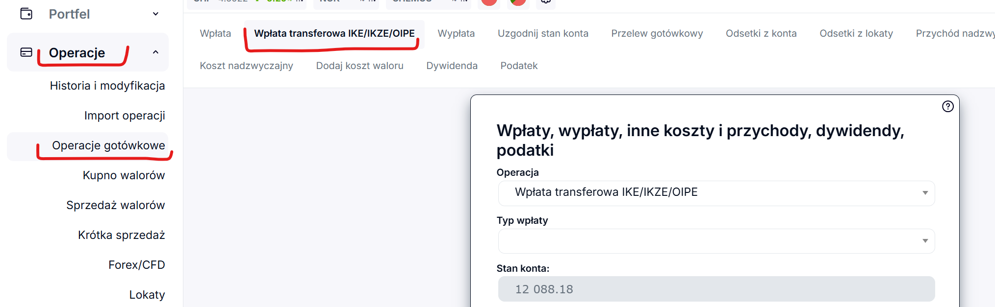 próbuję znaleźć opcję operacji "Wpłata transferowa IKE", ale też nie widzę takiej opcji. Czy jest to nadal dostępne? |