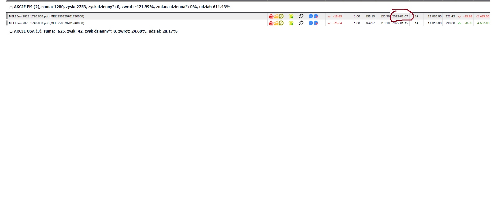 | 2025-01-16 11:41 11534 wpisy 325 dni temu | Nie wiem dlaczego, ale na Yahoo też się "zatrzymała" cena na 07.01: https://finance.yahoo.com/quote/MELI250620P01720000/ | |