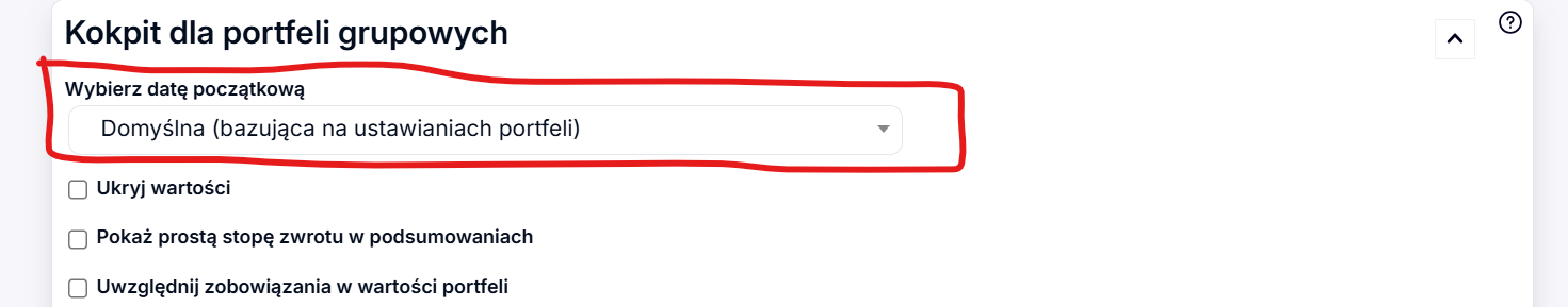 Czy jest możliwość, żeby na Kokpicie dla portfeli grupowych pojawiła się (analogicznie jak na zwykłym kokpicie) opcja wyboru daty początkowej (której wybranie przeliczałoby stopę zwrotu roczną, średnią roczną oraz zyski)?