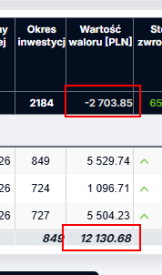 Przeskakuje mi zarówno cena nabycia, stopa zwrotu i data nabycia...