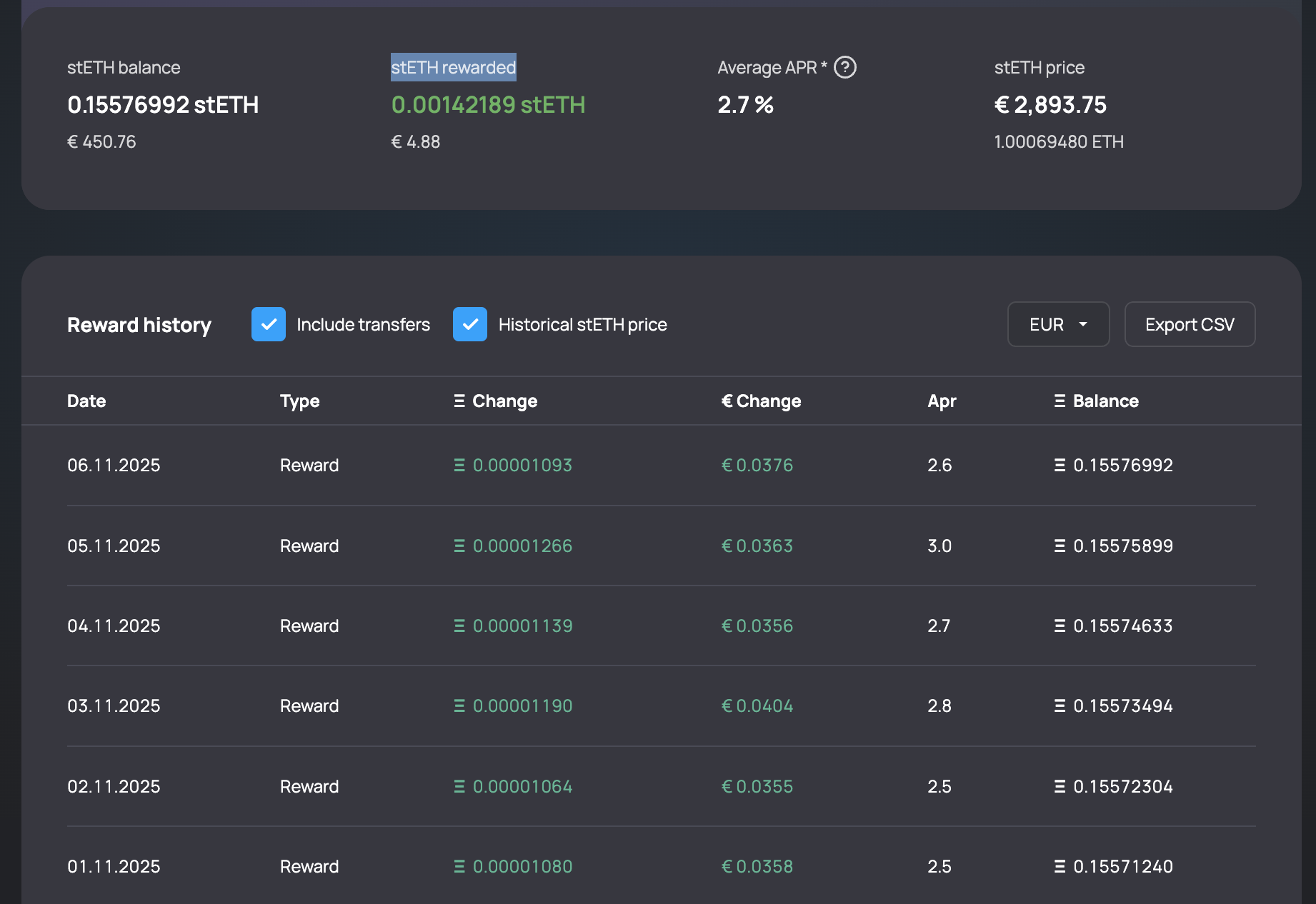 czy moge poprosic o mozliwosc dodawania do portfela nagrode ze stakowania ETH w Ledegrze? W zalaczniku wyeksportowany CSV z Lido