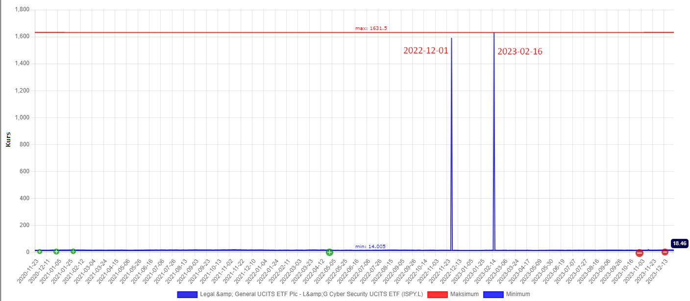 Wartosc ETF: Legal & General UCITS ETF Plc - (IE00BYPLS672.SG) z nieznanych mi przyczyn w dniach 2022-12-01 oraz 2023-02-16 skoczyla prawie 100 krotnie.