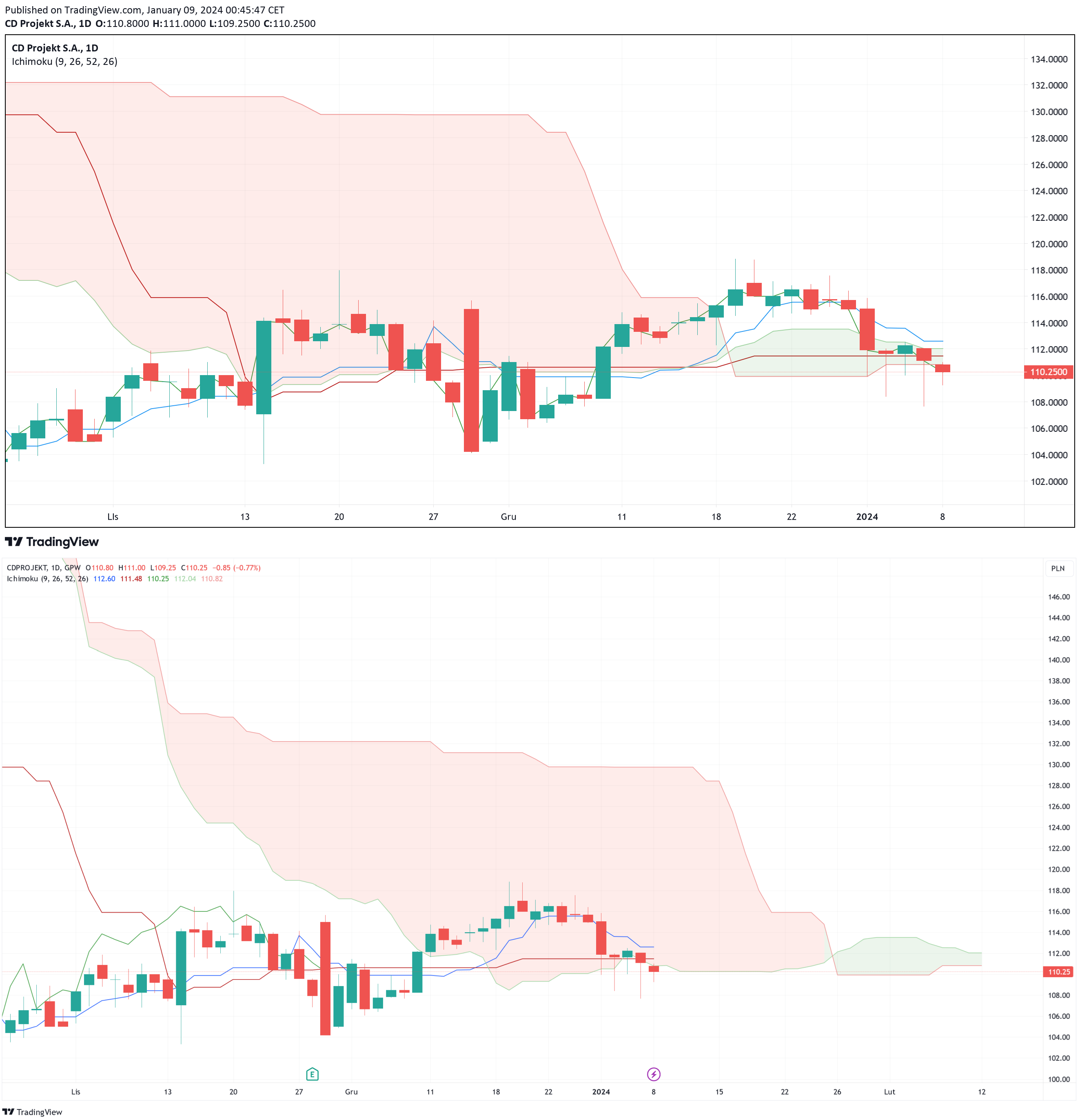 Pod wykresami jest tabela (ustawione okno 12 miesięczne). Dwa tematy.