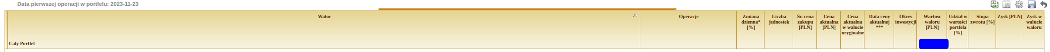mam portfel w USD (akcje + konto tez w USD). Wybieram "Waluta" -> PLN i wtedy wszystkie wartości w pierwszym wierszu tabeli portfela znikają (poza wartość PLN)