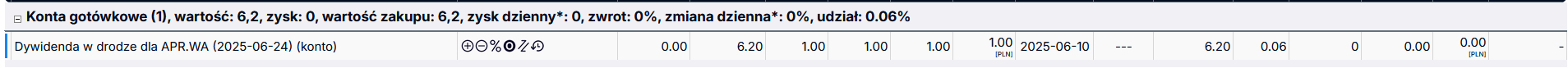 Natomiast w portfelu ciągle widnieje mi przyszły wpływ 6,20zł